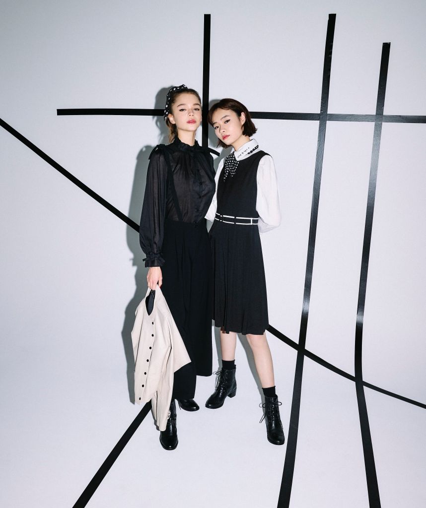 Black & White極簡黑白都會俐落,全新打造的黑白色調服裝,揉合法式隨興與極簡線條,在女孩俏麗氣息中注入一抹成熟俐落感,適合正式場合或職場裝束。寬鬆版型西裝外套,剪裁修身,搭襯本季新推出的寬版褲,顯得率性瀟灑。