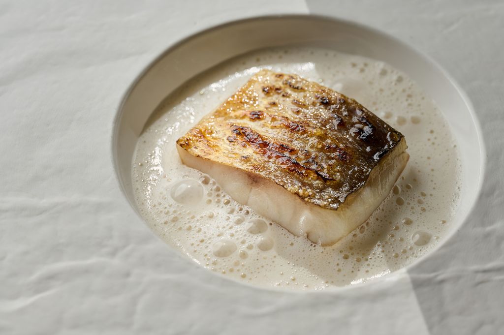 「卡農扣/松露/菇」充滿鹹香的泰式脆皮椰奶(Kanom krok)是泰國常見的國民甜點,底部麵糊用糖、麵粉與椰奶製作而成,外皮酥脆,內裡軟嫩的像半熟蛋,搭配松露與三種炒菇,濃醇的甜美奶香中有著迷人的異國風味。