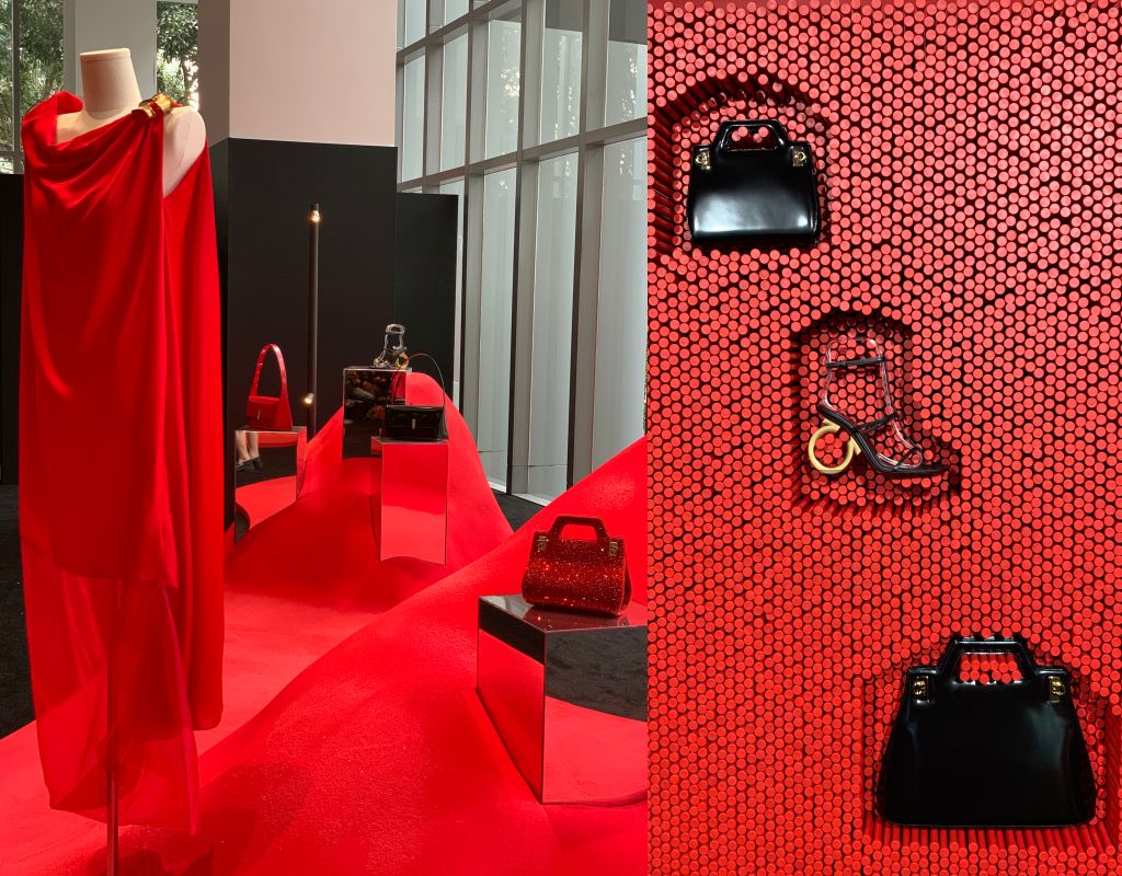FERRAGAMO 2023春夏發表會現場精心重現米蘭時裝秀場景,紅色細沙堆積而成的沙丘,壯觀而綿延,重新定調的「FERRAGAMO紅」元素,將米蘭秀場紅色基調與春夏系列精彩作品融入大型藝術裝置,宛如電影場景般洋溢超現實美感,完整呈現該系列源自好萊塢大氣優雅的風華態度。