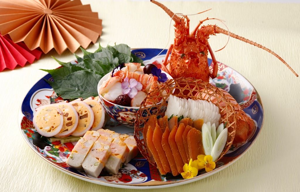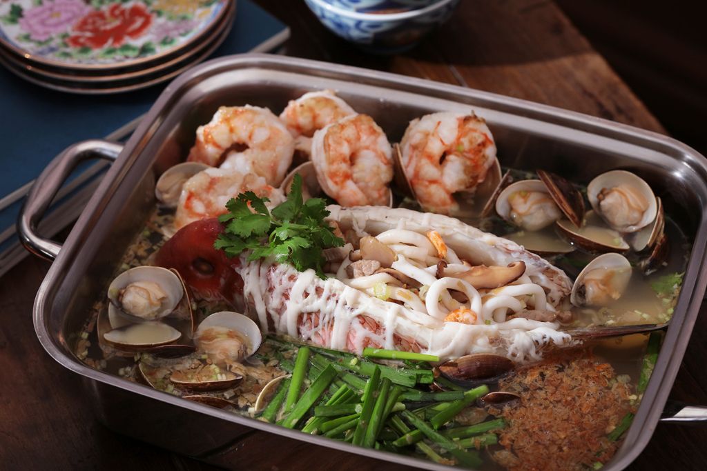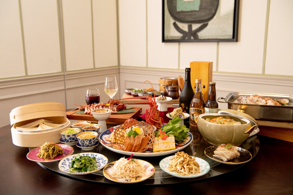 一卷潤餅不單只是一道菜,而是同時間將許多不同菜肴上桌,繁複做工展現師傅的手藝與底蘊,在潤餅內餡中海味要角「醉龍蝦極品海鮮拼盤」選用澎湖活龍蝦浸泡18年狀元紅製成「醉龍蝦」、百年歷史宴客手路菜「蟳丸」、「三色蛋中卷」、「高雄梓官野生烏魚子」組合而成。