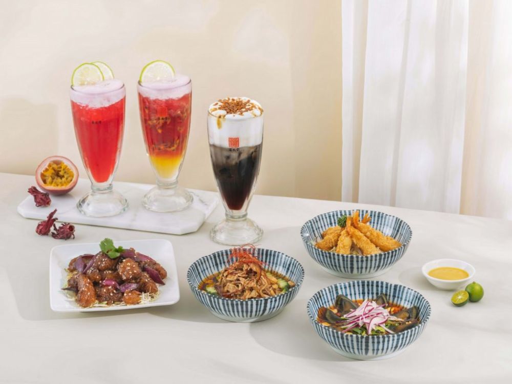 春水堂推出全新夏日新品,包括以洛神花熬製的洛神汁為底基,搭配百香果、愛玉的「夏之洛神」與「洛神香檸」、使用川味椒麻醬汁,調製涼拌皮蛋與植物肉雞絲,及使用中國4大名醋的「鎮江糖醋肉套餐」,酸辣又開胃。