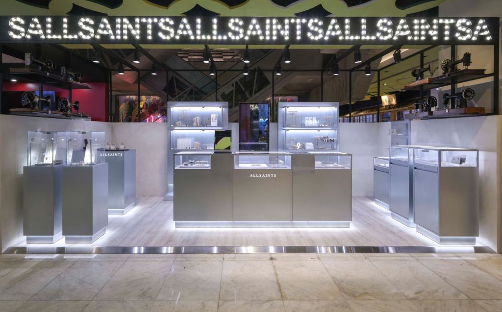 ALLSAINTS以全新店裝重新打造南西專櫃,店面融合復古經典縫紉機牆、及充滿現代感的霓虹LOGO燈,概念對比鮮明,嶄新店裝呈現品牌新風貌。