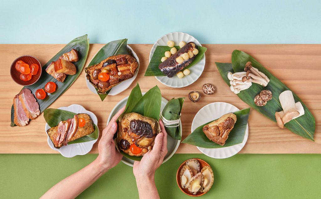 台南遠東香格里拉還推出「端午豪華禮袋」,囊括飄香四溢重磅海味精華的「鮑魚虎掌烏參粽」,包入整顆14頭鮑魚、烏參、虎掌等豐料,以層層桂竹葉及荷葉烹調軟嫩入味。經典「五福粽」,將眉豆、花菇、鹹蛋黃、魷魚及豚肉等上選豐富食材包入餡、汁香味美,勾起懷念老滋味。