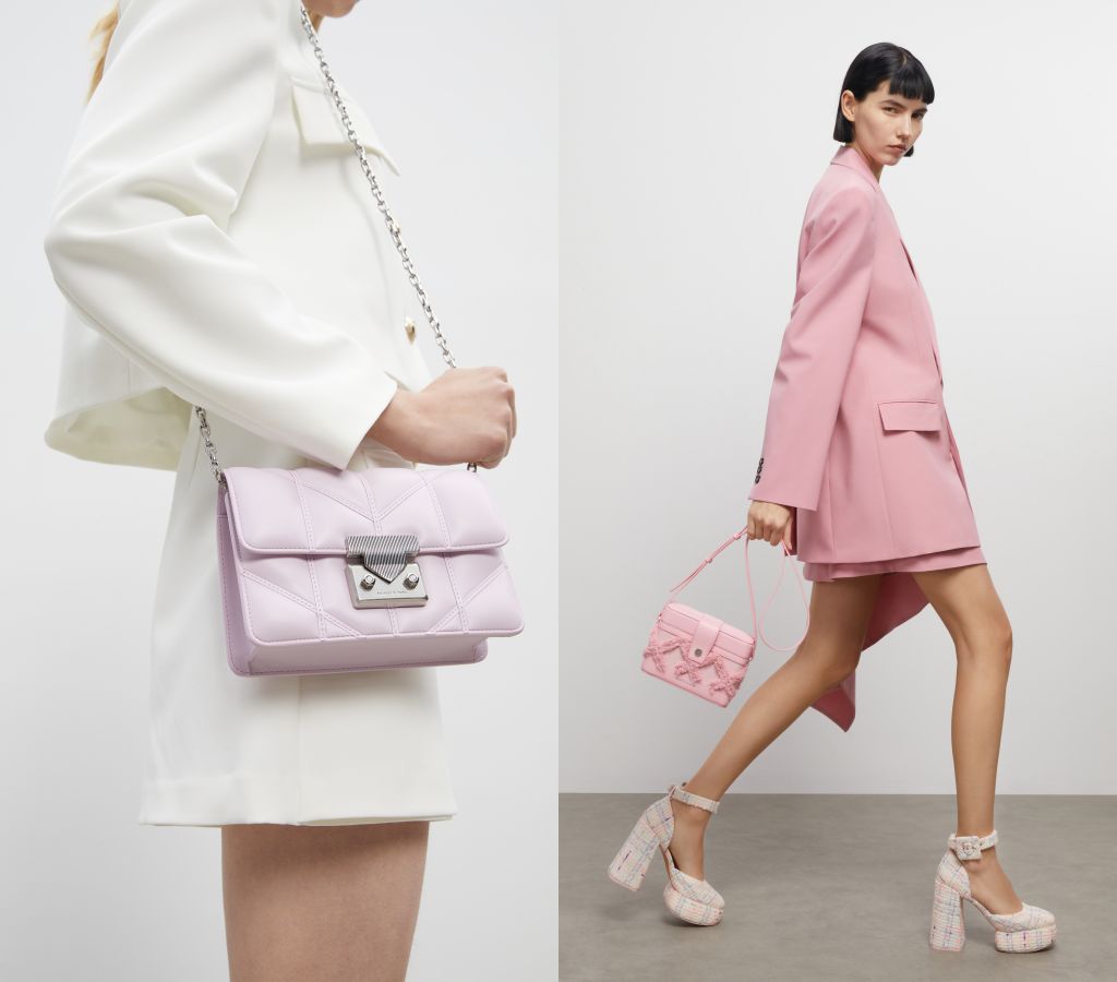 CHARLES & KEITH春季系列以簡單、乾淨的線條設計加上大面積色塊,打造青春洋溢的時尚樂園,充滿活力的各種粉色單品成為本季焦點。俏麗可愛的芭比粉、氣質清新的櫻花粉、熱力四射的桃粉色,不同色階的粉色系帶來不同氛圍,讓造型更有層次。