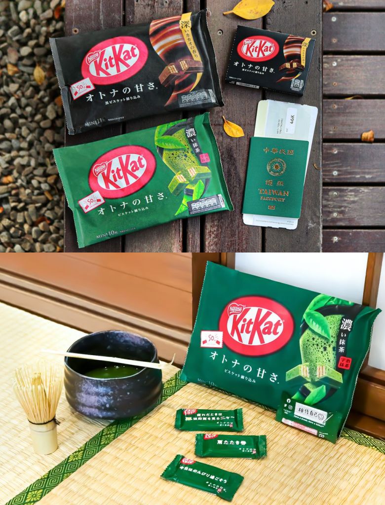 日本旅遊必buy伴手禮「雀巢KitKat巧克力」首次原裝進口來台。精選日本KitKat 50周年最暢銷經典口味,引進「KitKat濃黑巧克力口味」與「KitKat宇治抹茶」2款日本最受歡迎超人氣口味,濃醇正宗日本風味讓人欲罷不能。