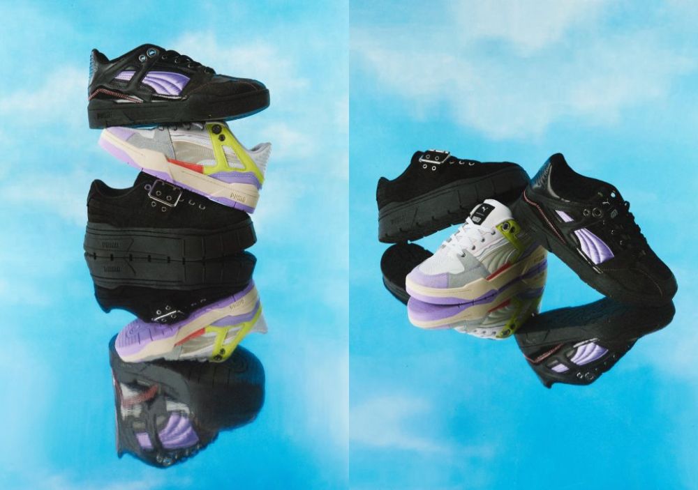 首波PUMA╳The Ragged Priest聯名致敬2大品牌經典,使用霓虹印花圖樣、不對稱元素、對比色縫線等設計重點,融合雙方獨有DNA碰撞出眼睛發亮的多樣時尚單品。聯名鞋款則特別欽點年度人氣Slipstream及Mayze Stack為原型翻玩設計。