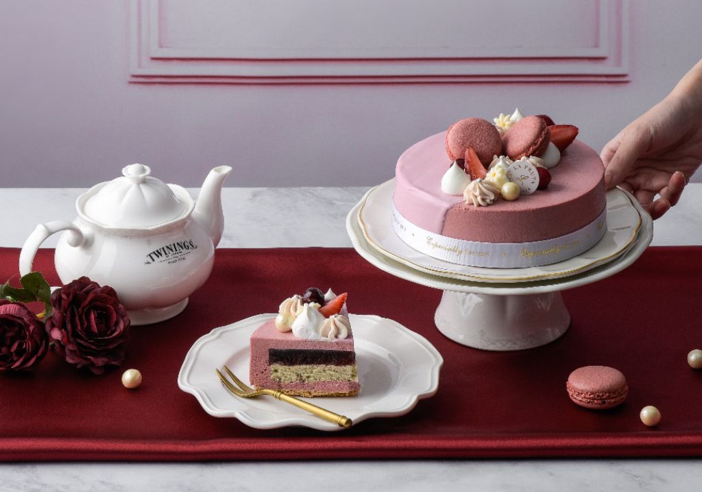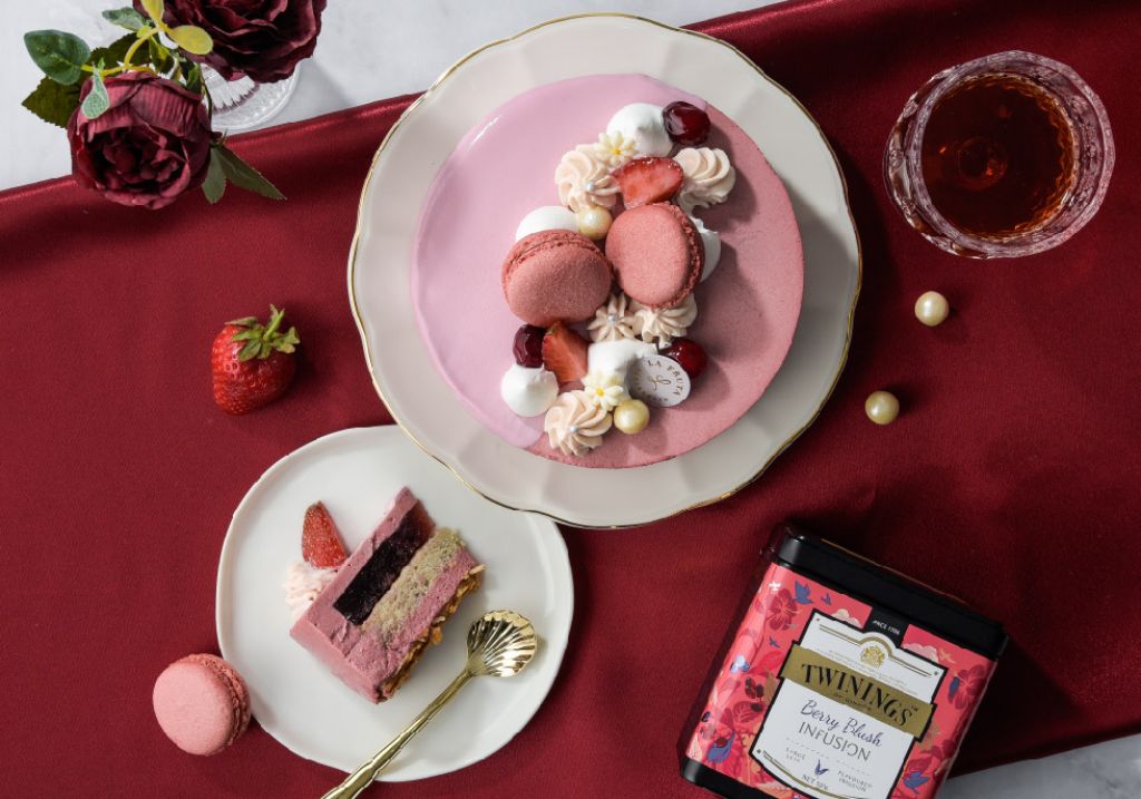 黑浮餐飲集團旗下甜點品牌La Fruta朗芙法式甜點推出最新力作珍珠馬卡龍胭脂莓果慕斯,特地運用英國唐寧TWININGS鉑金款系列Berry Blush Infusion胭脂莓果茶,精心研發製作高質感法式甜點聖品。