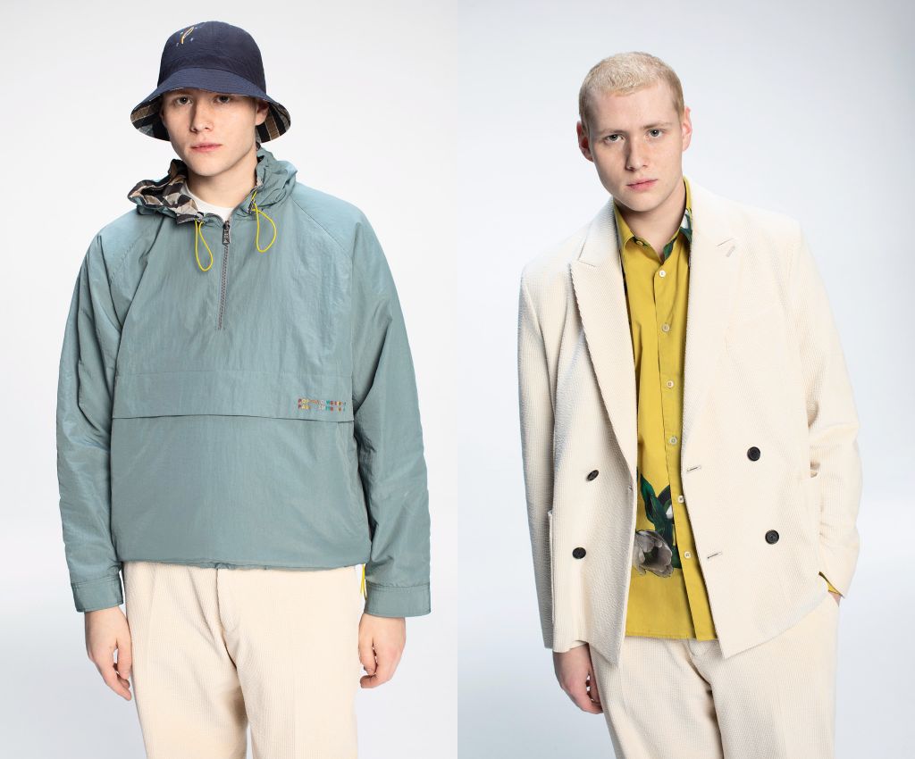 Pop Trading Company休閒滑板風格定義了系列整體輪廓,包括寬鬆工裝褲、短褲、雙面翻蓋連帽科技夾克、針織背心、Polo衫、漁夫帽與休閒襯衫,部分單品直接複製Paul Smith過往經典風格。