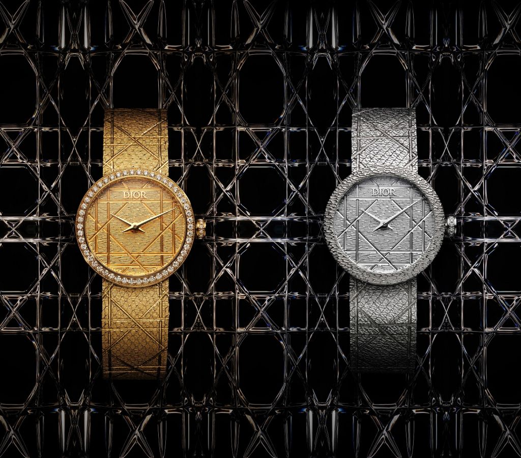 2023年推出的La D My DIOR全新作品,匯聚高辨識度的絲綢錶帶與典型劍形指針(太子妃指針),並將經典符碼籐格紋融入設計語彙,體現精湛製錶工藝。