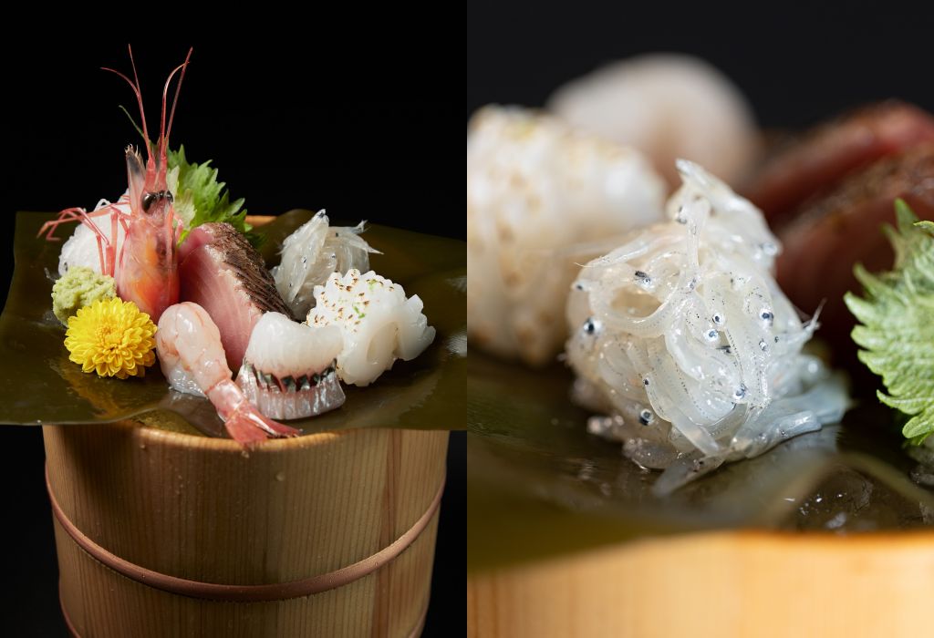 這個季節最具代表性的刺身就是水針,看到水針就知道春天來了,而為環境永續規範在每年4月15日開放捕捉的吻仔魚更能嘗到當令魚貨的鮮美。