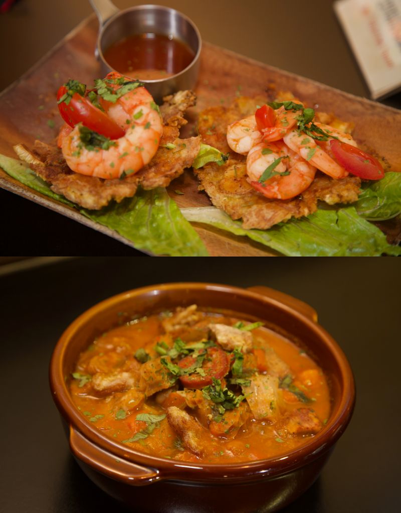 “Pollo Picante"巴拿馬辣豆醬燉雞搭炸香蕉片,以巴拿馬辣豆醬為主,將辣椒粉、紅椒粉燉煮奶油豆至綿滑軟透,放入雞腿肉再次燉煮,微辣口感搭配濃郁融化起司,滿足口腹之欲。