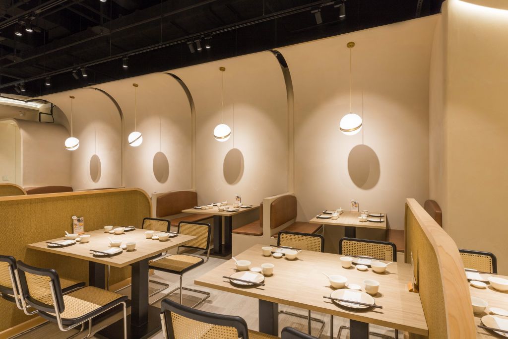 華漾DIM SUM以蒸籠的”煙”為發想,讓行雲流水的線條流淌於空間中,點心櫥窗可看見點心師傅以職人手藝現點現包,輕桿薄透麵皮,細膩手法包裹餡料,能夠安心品嚐當日現做的新鮮港點。