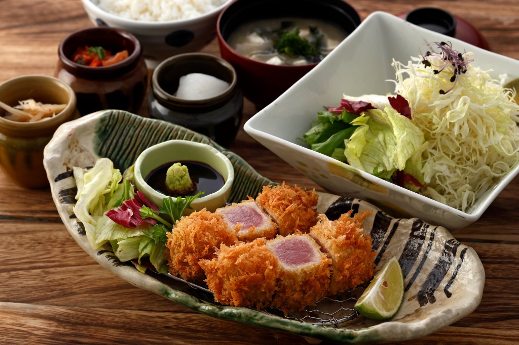 以蔥鹽做法呈現的「蔥鹽鮪魚套餐」,將東港新鮮鮪魚酥炸至2分熟,以麵衣封鎖住鮪魚的鮮味與軟嫩,更能提升出新鮮鮪魚的豐富多層美味。熱愛豬排又想要嚐鮮的饕客,以東港鮪魚搭配台灣究好豬雙組合的「蔥鹽鮪魚腰內套餐」,可感受到2種肉質不同的軟嫩口感,一口鮪魚一口腰內豬排,絕對是此季節最佳享受。