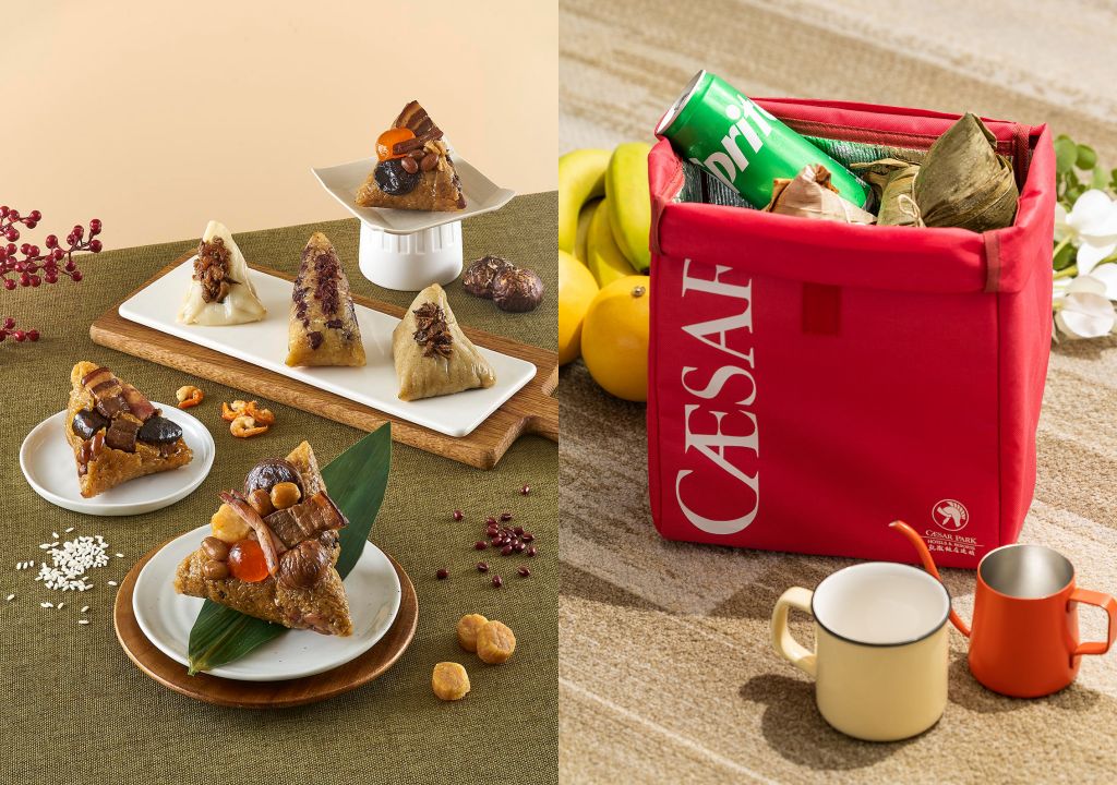 今年端午節與考季相近,板橋凱撒大飯店推出星級飯店品質、親民價格2款端午節禮盒,集結常年熱銷款及最受歡迎經典傳統口味,為葷素綜合6款口味「六元及第端午禮盒」,及素食組合「凱撒蔬福粽香禮盒」,搭配簡約設計、生活風格感的文青風凱撒經典復刻保冷袋。