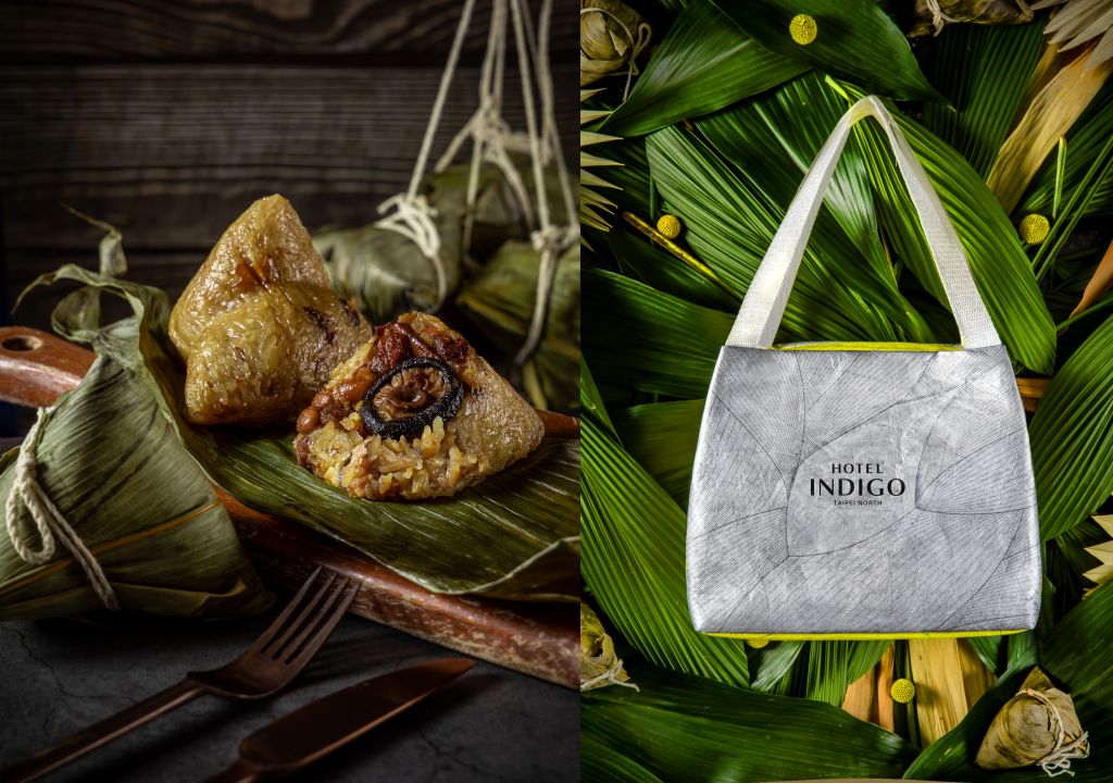 台北大直英迪格酒店推出「情深意粽」端午禮包,6顆傳統道地的阿嬤思鄉味肉粽,搭配環保限量大膽跳色的造型保冷袋及不規則粽葉紋路潮設計,以迷幻黃與鉛白銀為主色,搭配環保材質杜邦粽袋,兼具時尚與實用的保冷袋。
