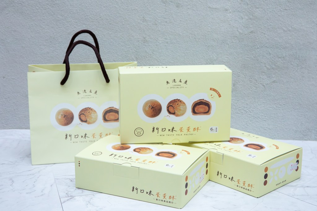 在彰化鹿港經營超過30年的新口味食品行,是當地人私藏口袋名單,近年更名列鹿港必吃的蛋黃酥名店之一。一顆顆純手工的蛋黃酥,有著層次分明的爽脆酥皮,綿密紅豆沙餡,包覆鬆沙可口的紅土鹹蛋黃,恰恰好的清甜與溫潤鹹香完美結合,令人齒頰回味,許多顧客一吃就回不去了,吃過一次就上癮。