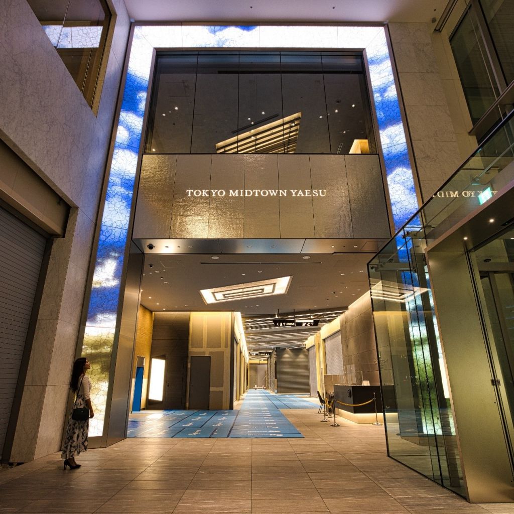 東京中城八重洲購物商城融合日本文化傳統與現代特色,別樹一幟。入口以結合現代化數位藝術及傳統織布”西陣織”為意象之門「Nishijin Reflected」,令人眼睛一亮。商城裡陳設各個日本特色品牌是一大賣點,傳遞日本文化價值。