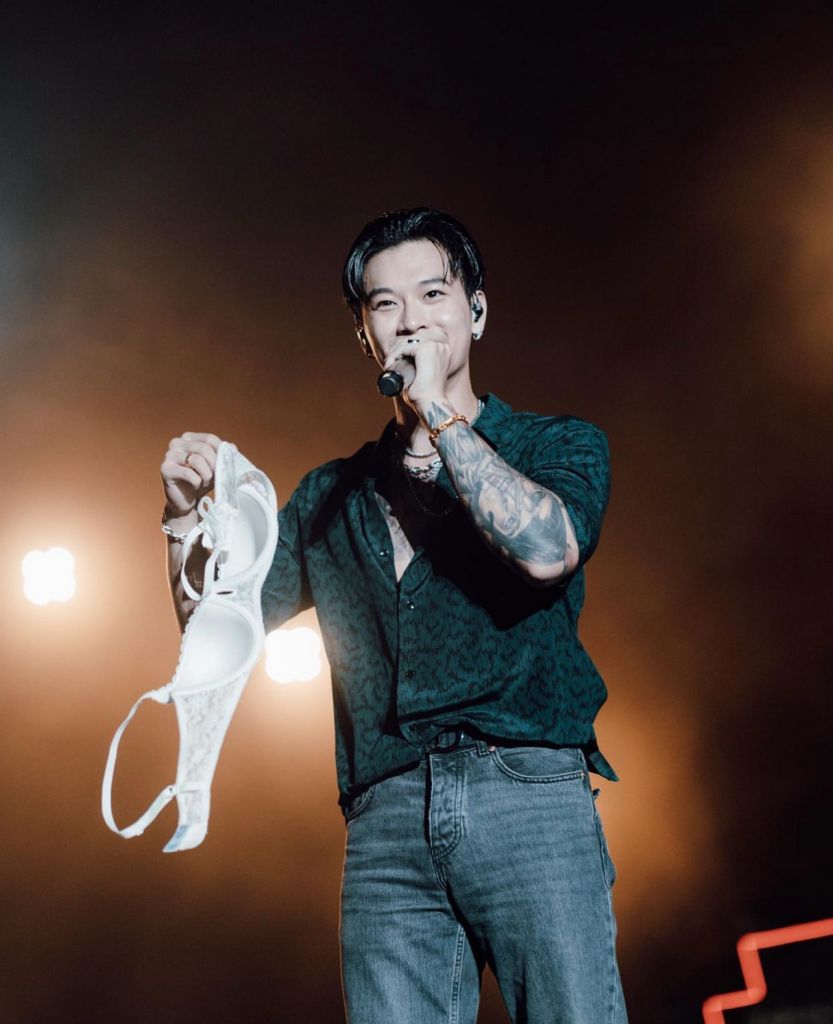 而在香港夜店表演感受到港迷熱情的高爾宣,這次在音樂祭竟然又收到女歌迷的內衣,讓他害羞笑說:「整個很瘋狂!」