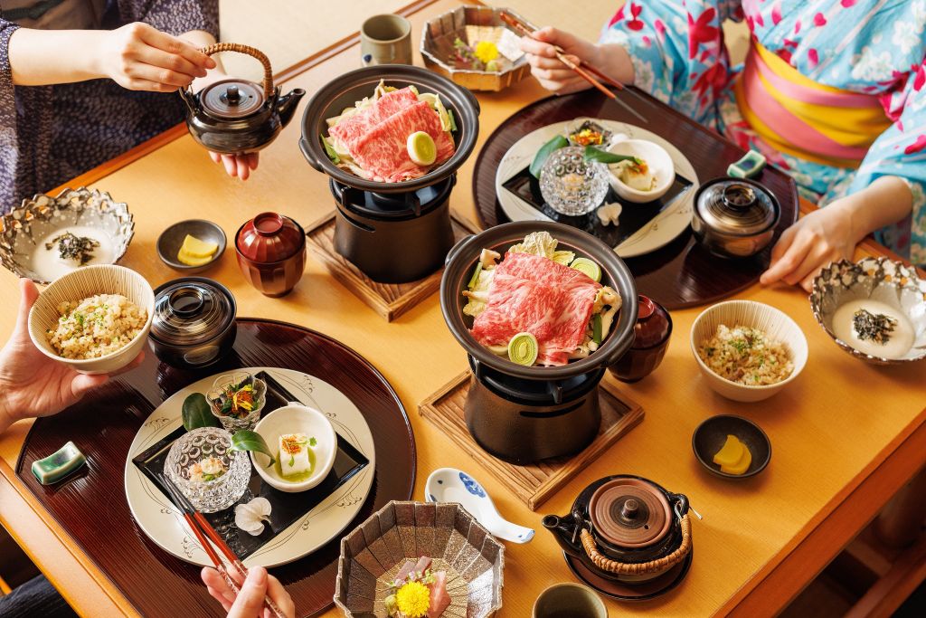 部屋食客房晚餐時間不需到餐廳,而是由管家把餐食送到房間享用,在客室榻榻米空間享用頂級生魚片與日本A4黑毛和牛鍋,在房內就可品嚐天翔廳5件式會席料理,避開用餐人群、最重要的是一邊吃一邊講男友壞話,女生專屬浴衣Party有夠舒服暢快!