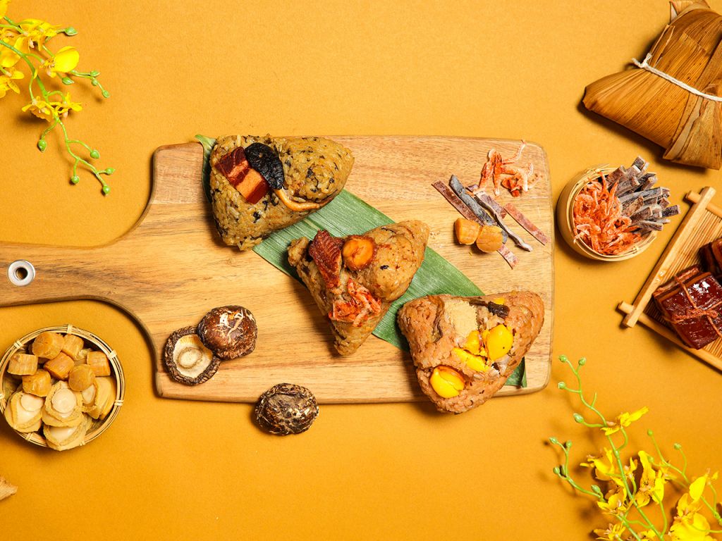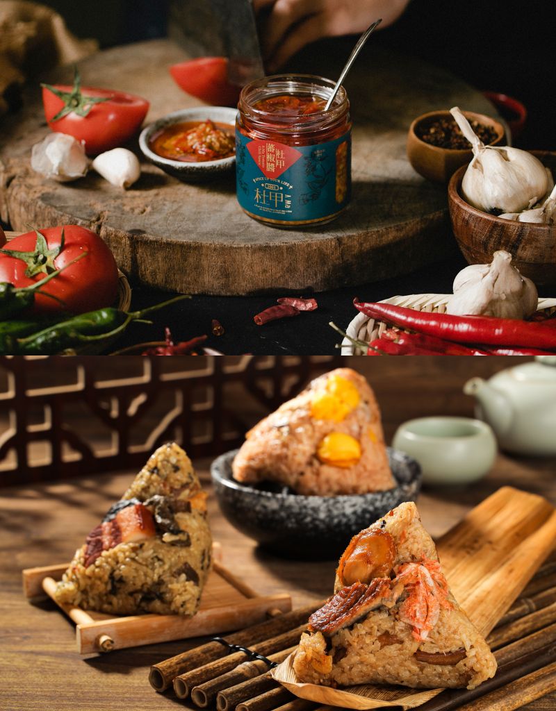 煙波國際觀光集團以粵菜精燉烹煨結合客菜經典口味,研製3款手工山海粽組,聯手亞洲首間辛香料概念店杜甲A-Ma合作,以辣萃精煉的拌醬巧搭肉粽,譜出最極致的辛香鮮,打造品粽輕奢新體驗。