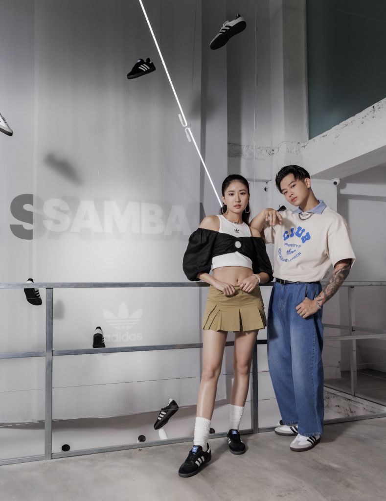 柯佳嬿與林柏宏選擇極簡黑白色調搭配SAMBA,簡約大氣時髦Clean Fit風格,盡展高街時尚風範。9m88與高爾宣以充滿熱情的夏季質感街頭穿搭演繹經典SAMBA,大膽展現SAMBA的前衛街潮風範。