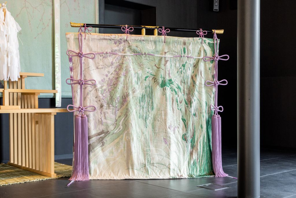 曾經參加巴黎時裝週等活動的世界知名時裝品牌Mame Kurogouchi黑河内真衣子操刀製作御帳與几帳,融入對菅原道真公與太宰府天満宮歷史的感念,用傳統工藝結合現代編織機呈現充滿生機的感覺。在融合菖蒲與境內花草等元素的過程中,天神大人與天滿宮的歷史在未來中被織成。
