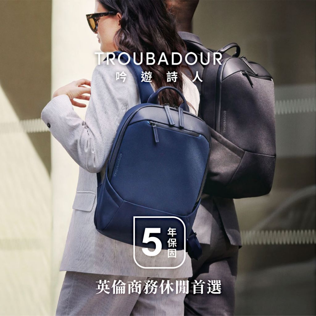 英國新銳設計師品牌TROUBADOUR吟遊詩人,包款簡約流線,精鍊時髦,面料採用環保材料,細節精心打磨,重視人體工學、防水機能,首創業界唯一五年保固,凸顯精湛工藝與用料,是穿西裝也能背的後背包,工作或休閒場景轉換都能自在展現自信魅力。