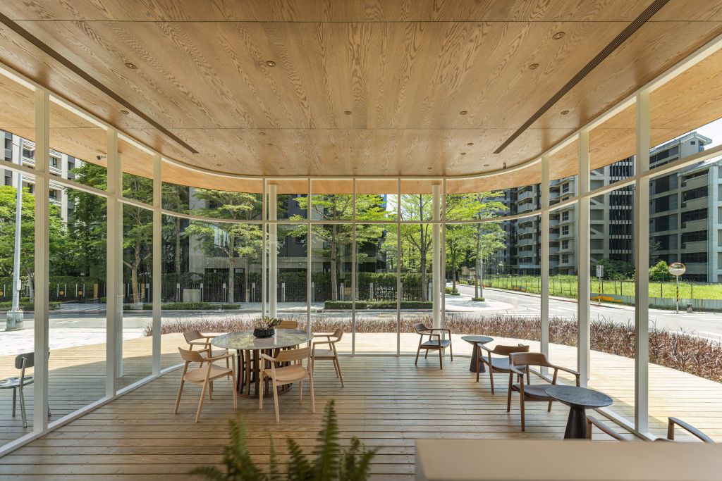 Tomo由此核心切入,選以大塊玻璃與木構簡單組合呈現深澤空間的魅力,挑高空間與木柱比例是細膩微調出優美舒適,處處充滿深澤直人喜愛的圓角,讓空間有了潤澤親和力。選用內外空間連成一氣的木地板,展現深澤直人希望讓城市中人們也能被自然包圍的心意。