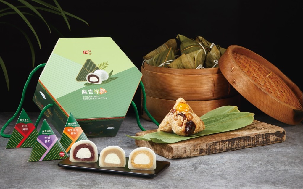 端午節倒數計時開始!85℃推出道地傳香肉粽與冰粽,由國寶級師傅王振癸監製,傳香肉粽以肥肉相間的五花肉為主,搭配香菇、蛋黃等多樣配料、粽葉揉合出鮮鹹香氣四溢。冰粽則是冰冰涼涼麻糬皮,搭配海岩花生鮮奶、紅豆鮮奶、芋頭鮮奶等3種內餡,多元口味盡收一盒。