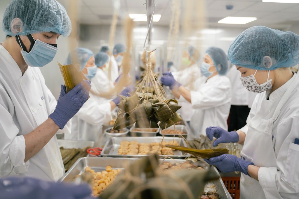 國寶級師傅王振癸監製,精選南台灣後壁鄉圓糯米,清洗浸泡特調醬汁一天後先蒸煮,再搭配傳統肉粽花生、菜脯、鹹蛋黃、五花三層豬肉四大天王,還有整朵的台灣嚴選香菇,佐以蝦米拌炒入味,內餡層層推疊粽葉綑綁後,再放入蒸籠內以古法蒸炊,粒粒糯米口感Q彈、香味四溢。