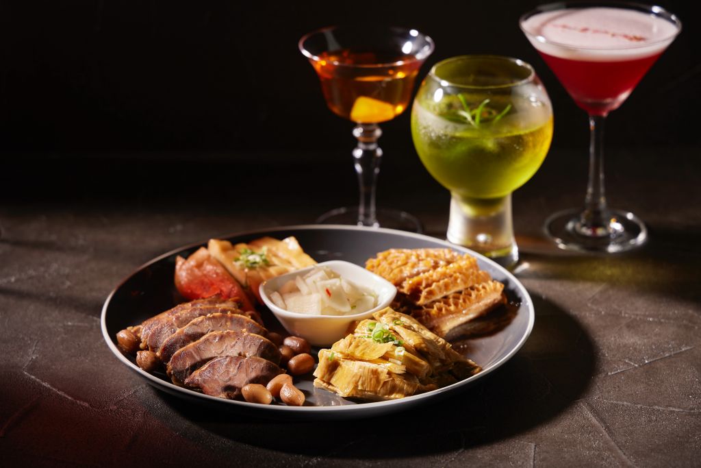 行政主廚陳明烽也特別設計佐酒小食,點用茶酒暢飲即可以加購綜合台式滷味集,嘴邊肉、豆皮、牛肚、甜不辣等4款鹹香夠味的下酒小菜,品酒也能享美食。