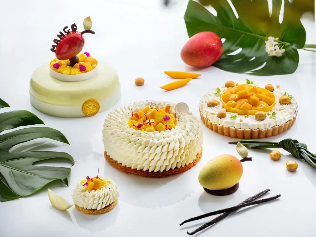台北文華東方酒店行政西點主廚趙崇曦(Kevin Chiu)推出多款可口誘人的芒果甜點,以果肉細緻飽滿且香甜多汁的愛文芒果為題,巧妙搭配芝麻、斑蘭葉與檸檬葉等不同風味,打造令人垂涎的精品級美點,完美呈現果香四溢的夏日清爽滋味。
