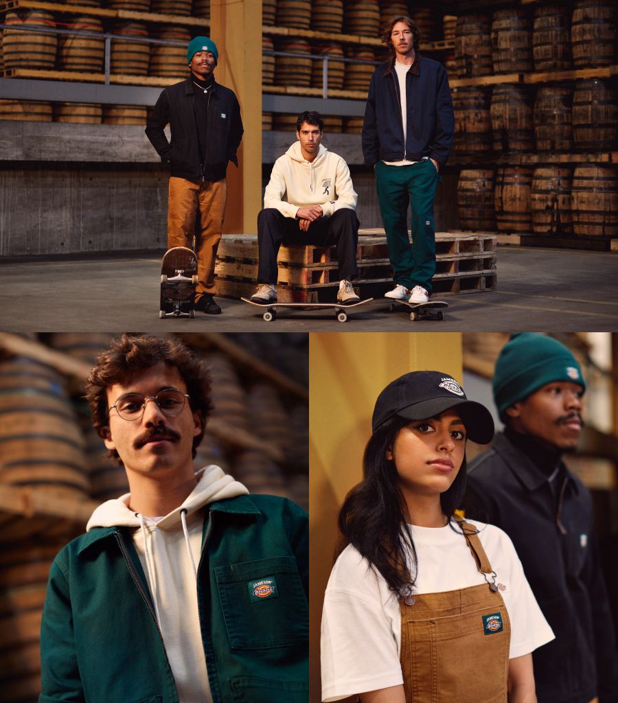 Jameson全球營銷總監Brendan Buckley表示:「18世紀Jameson成立初期總能在下班後的酒吧看見身著工裝的人們人手一杯威士忌;而在海的另一端,Dickies則為無數勤奮的工人們提供價格合理且高品質服飾,我們很高興能透過合作將這種共同精神傳遞出去。」