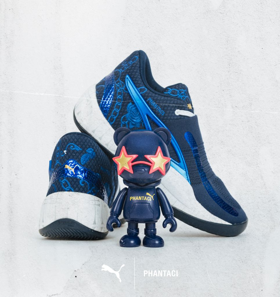 聯名系列鞋款以PUMA經典SLIPSTREAM與RISE NITRO鞋型為設計藍本,帶來2款全新佳作。鞋款外觀採用與本季聯名服裝單品一致風格圖案與配色,展現PHANTACi創意總監周杰倫對巴洛克藝術的獨道見解,充分貫徹本次奢華、沈穩的美學主題。