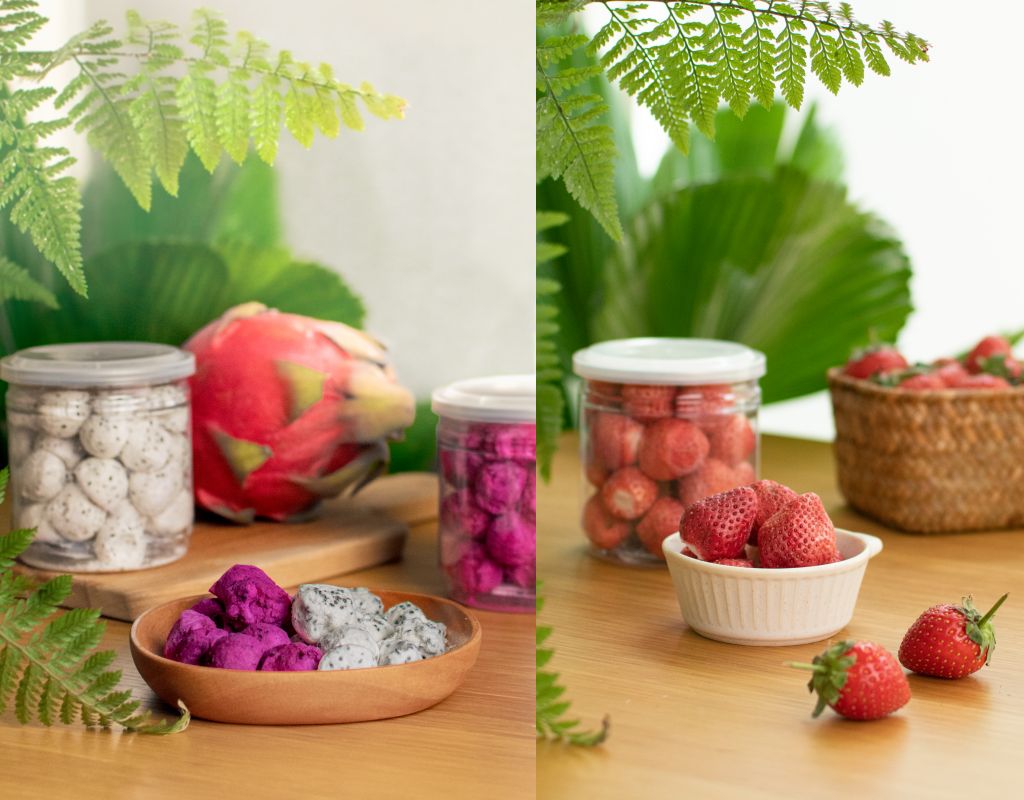 旅旅食光主打使用真空冷凍乾燥技術製作,歷經人工初步挑選、三階段洗淨、急速冷凍與負40℃ 50小時以上真空冷凍乾燥,成就營養成分保留80~90%太空系輕果乾,能延長保期,外型也與原始狀態幾無差異,甚至加水浸泡數分鐘即可還原原始口感及風味,彷若將產品由農場直送家中。