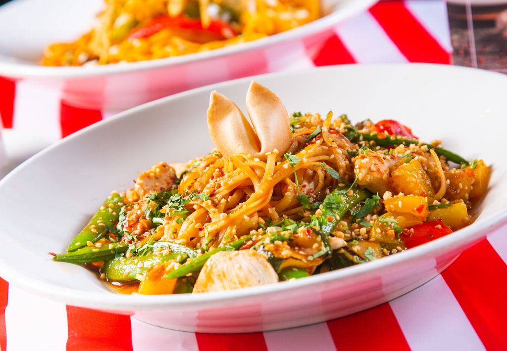主角義大利麵共有6款獨創風味,唐人街風格宮保炒義大利麵將一枚幸運餅乾放置於盤中上桌,完美呈現中美混搭風味。南美風情的阿根廷青醬烤蝦蕃茄麵以蕃茄馬利納拉醬為基底,搭配義大利寬麵及2串阿根廷青醬碳烤鮮蝦,異國風味熱情上桌。
