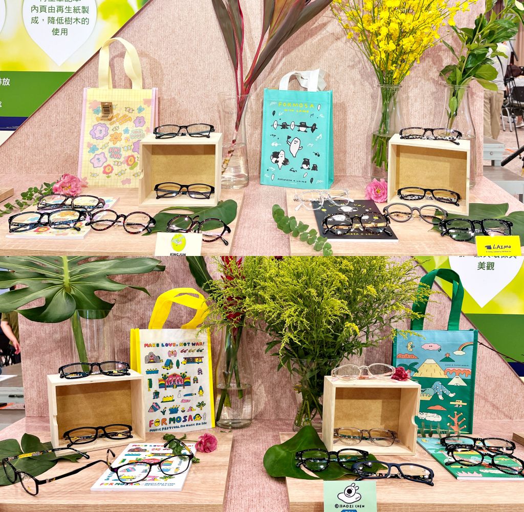 4位設計師聯名款眼鏡巧妙融合設計師的特色與巧思,讓配戴眼鏡成為一件展現自我風格的事。凡購買設計師聯名款即贈送再生筆記本、環保購物袋、眼鏡盒及眼鏡布。還有側背包及超音波清洗機等周邊商品,皆印有設計師代表性圖案,讓戴眼鏡愛地球又展現自我風格。