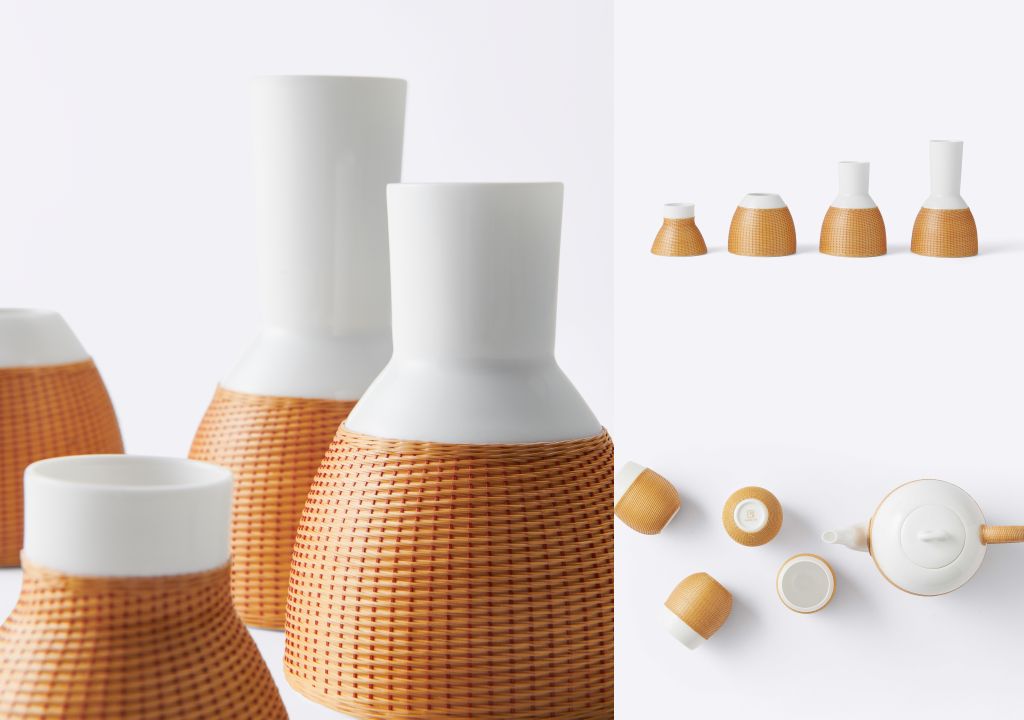 橋寓意聯繫,代表人們因茶而歡聚,在裊裊茶香中感受融洽暖意。特別的是,SHANG XIA上下竹編工匠此回特別為橋系列白瓷茶具,在瓷胎竹編的傳統肌理,設計出一種名為”竹絲扣瓷”的創新藝術編法。