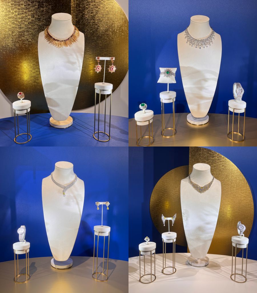 本次展出近130件、總價超過新台幣15億元頂級珠寶暨腕錶作品,透過放射狀線條、色彩美學、不對襯輪廓、伯爵玫瑰、欖尖形切割、宮廷式雕刻、超薄製錶、手鐲珠寶錶等8個篇章致敬致敬PIAGET令人景仰的頂尖技藝及工匠精神。