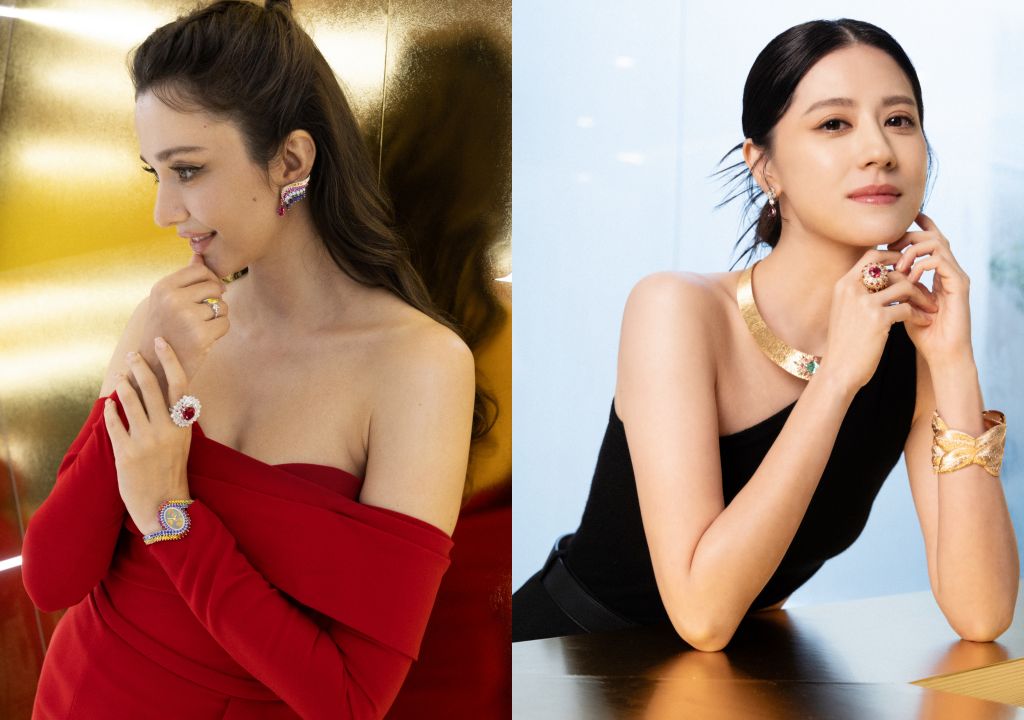 林予晞配戴18K玫瑰金帕拉伊巴碧璽項鍊,在優雅風範中突顯一絲古典氣息,舉手投足間展現清新脫俗迷人魅力。瑞莎耳間搖曳一款全球限量一件Wings of Light頂級珠寶系列18K白金彩色寶石耳環,襯托美豔動人的女神氣質,豐富色彩更展現女性專屬成熟優雅風範。