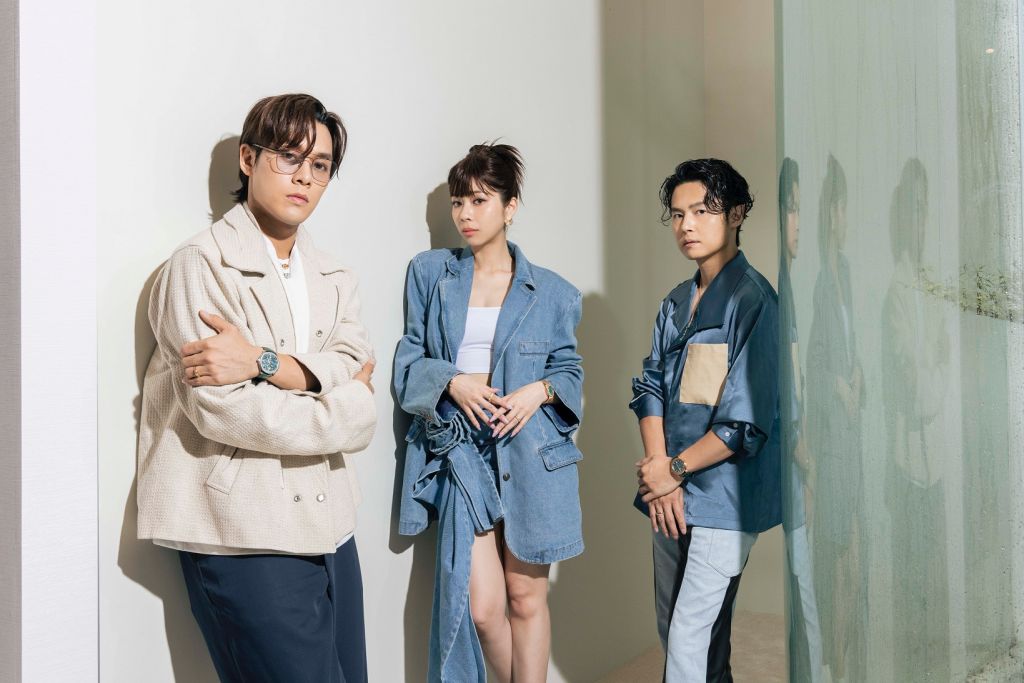 新聲代樂團告五人 主唱兼吉他手雲安配戴Polo系列孔雀綠鏤空超薄精鋼腕錶,突顯活力與熱情;鼓手哲謙以皮革錶帶18K玫瑰金孔雀綠日期顯示自動上鍊腕錶,彰顯自我風格與光彩;主唱犬青配戴綠色錶盤Limelight Gala系列腕錶,不對稱造型展現現代女性獨有靈動自信,18K玫瑰金紅寶石鑽石耳環點綴亮點,充滿放射線條設計讓整體造型充滿氣勢。
