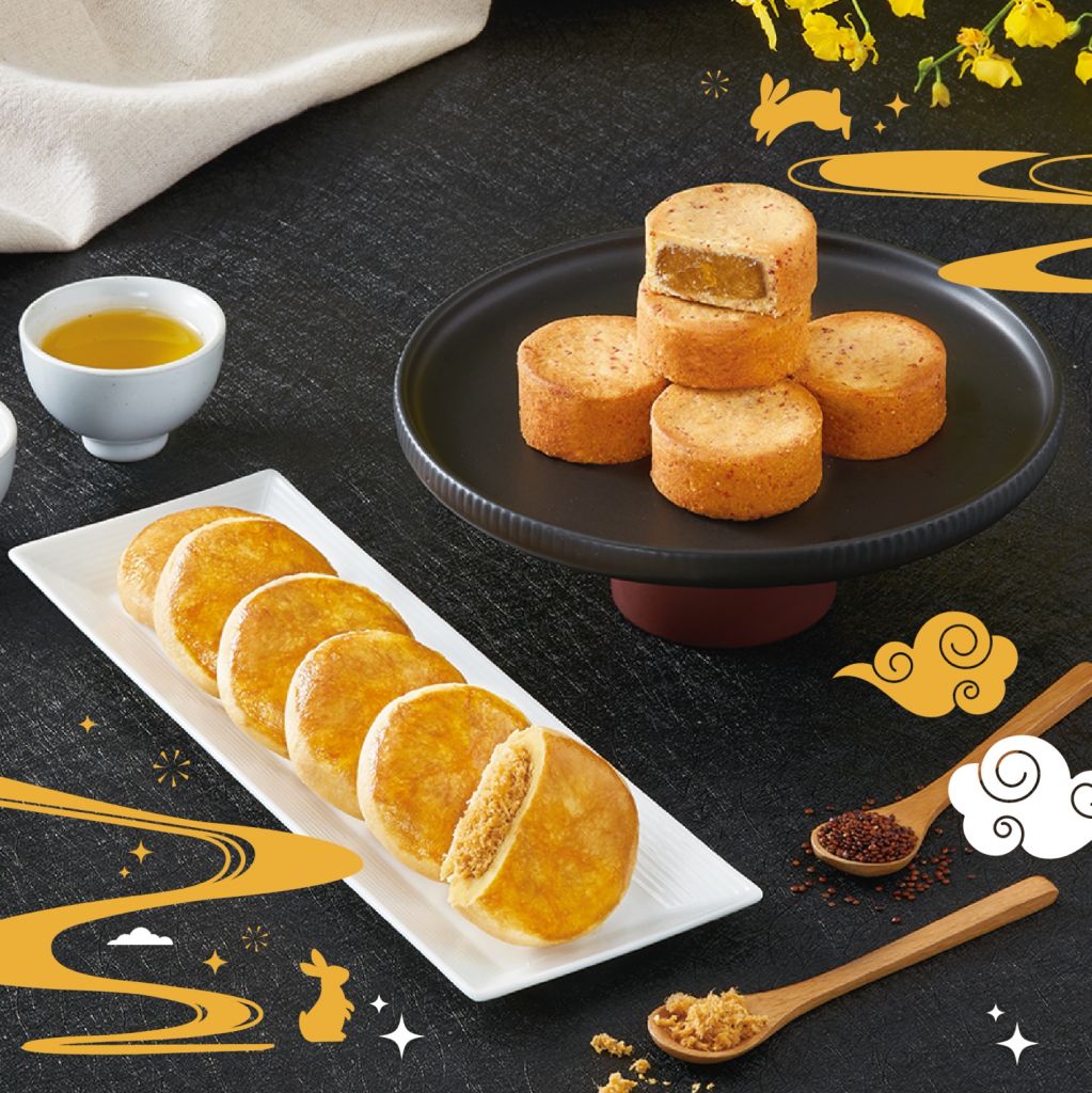 法式肉鬆餅禮盒創新融合中式糕餅及西式派皮概念,外皮採法式鹹派工法研製,香氣十足的美味肉鬆拌入濃郁奶皇餡,金黃餅皮與奶皇內餡,口感厚實、香氣十足。紅鑽香柚酥禮盒以經典柚子酥添加健康紅藜麥而成,入口品嚐柚子餡清爽微甜不膩口,柚子皮的香氣與紅藜麥搭配外皮酥香,品味時再配上一杯好茶,勾勒出經典好滋味。