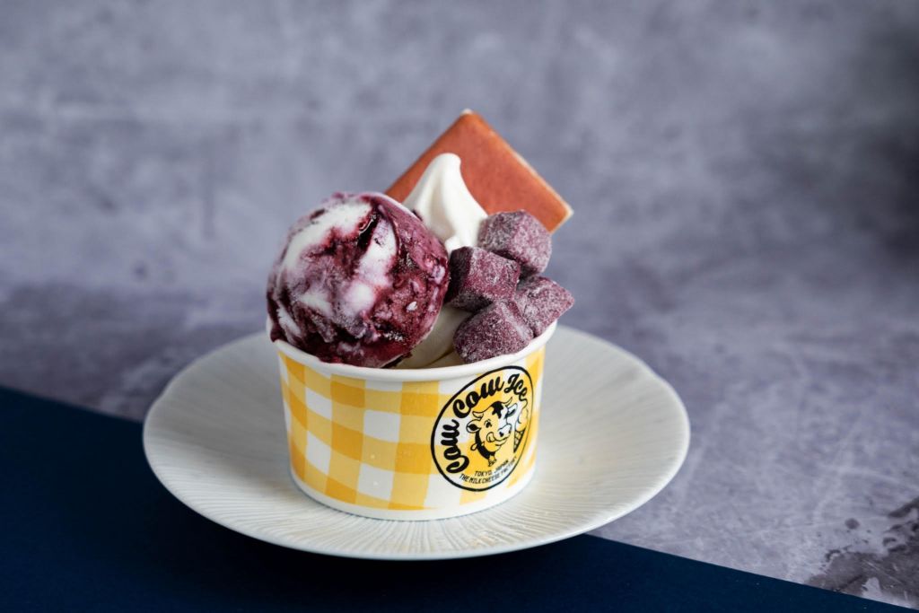 同步推出新品藍莓優格聖代,使用北海道產澤西牛奶及馬斯卡彭起司製作,搭配主廚特製藍莓優格冰淇淋及藍莓棉花糖,加上一片草莓&馬斯卡彭起司夾心餅乾,雙莓甜品呈現酸酸甜甜、鬆軟綿密好滋味。