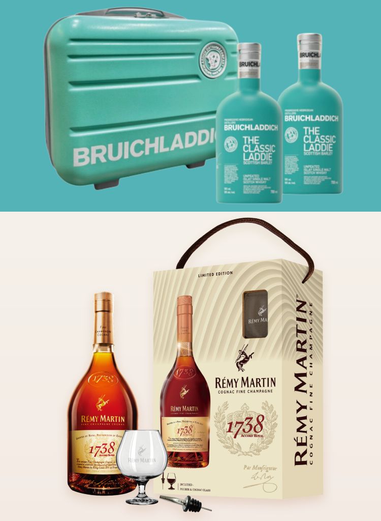 人頭馬君度集團人頭馬RÉMY MARTIN及布萊迪BRUICHLADDICH分別推出中秋限定禮盒產品。人頭馬璀璨獻上人頭馬「1738光耀禮盒」,中秋限定版禮盒披上低調優雅外衣,禮盒內貼心附上方便盛倒酒款酒嘴與人頭馬限量款干邑白蘭地杯,實用搭配與歷經百年傳承的雋永經典干邑相輔相成。