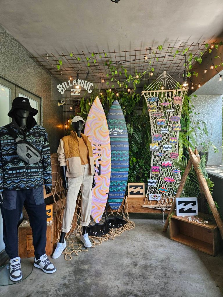澳洲潮流衝浪品牌BILLABONG1973年於澳洲黃金海岸發跡,創始人因熱愛衝浪在自家廚房運用強力縫紉技術製作出第一件耐用舒適的衝浪褲造成轟動,而後發展出更多專業板類運動與休閒服飾全方位商品線。