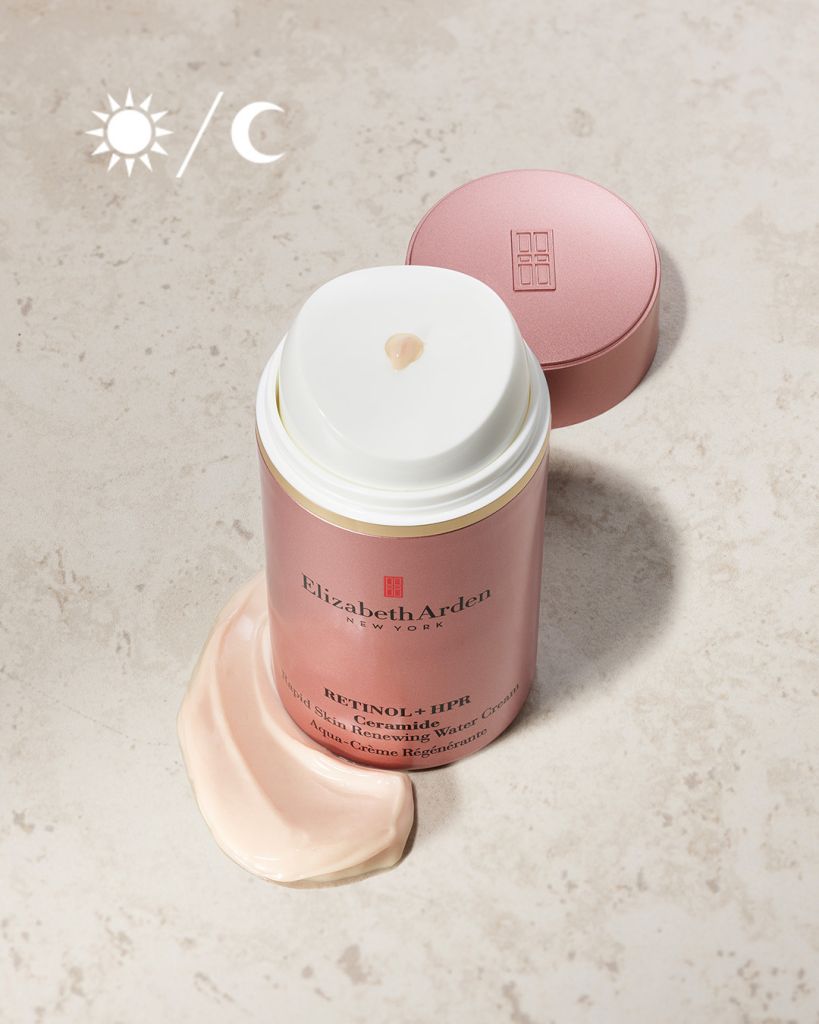 伊麗莎白雅頓EA全新「HPR玫瑰金抗痕水潤霜」#少女水潤霜#新世代A醇撫紋橡皮擦,此款超智慧雙A精華(A醇+ HPR新世代維他命A)功效是純A醇的10倍,帶來加倍的效能與呵護,證實在1週內溫和明顯淡紋,迅速修護回復光滑光澤,4週後肌膚更緊緻,煥發年輕美肌光采。