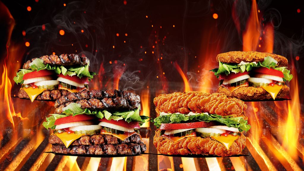 BURGER KING漢堡王再度推出「無麵包漢堡」,包括四層烤牛、雙層烤牛、雙層辣腿排、雙層脆雞等口味,滿足肉食控的喜好。還有新品鮭魚堡免費嘗鮮,接著連續推出華堡日與中秋補班優惠,讓100%的火烤美味長長久久纏繞舌尖,甩開澱粉負擔,全肉上陣,肉海無涯唯吃是岸,一起迎接秋天!