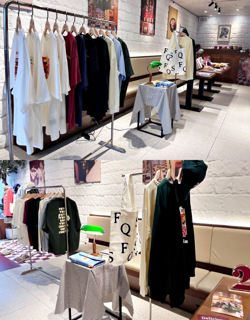 QUEEN SHOP以經典美式為概念設計,大玩貳樓人氣菜色及經典標語,推出男女不拘寬鬆穿搭單品,從百搭T恤到初秋衛衣,輕鬆塑造美式街頭四季風格,還推出馬克杯、冷水杯、保冷袋、飲料提袋、野餐墊等多種美味周邊樣樣俱全,小朋友才做選擇,美味的都給你!