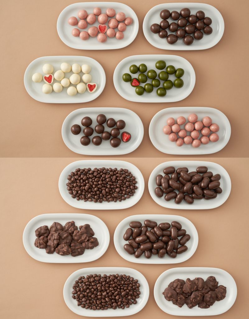 日本進口的花生、麥片及玉米果巧克力,也首次使用台灣產焙炒花生仁製作可可花生,生產可可麥片和玉米果可可,新上市黑可可花生特別提升黑巧克力濃度比例,滿足不喜歡吃太甜者口味。