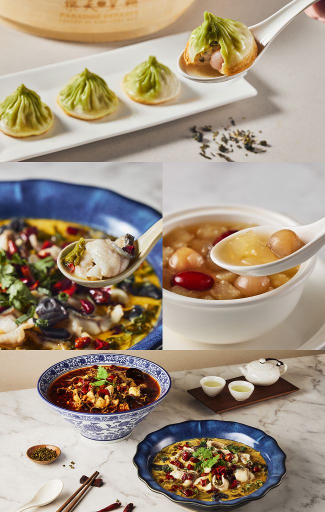 樂天皇朝以全球首創八色小籠包聞名,新北首店插旗新店裕隆城誠品生活,結合在地精神,將新店地區茶文化概念注入經典小籠包,推出全新限定口味脆皮包種鮮蝦小籠包。適逢食慾之秋,秋季全新菜單同步上市,主打川味雙絕私房酸菜魚、香辣水煮魚搶攻酸辣市場。
